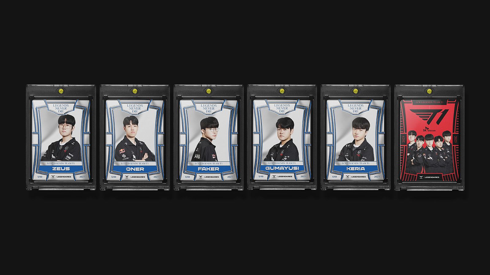 - 앞면은 선수 프로필 사진, 뒷면은 T1 로스터 선수 전원이 들어갑니다.