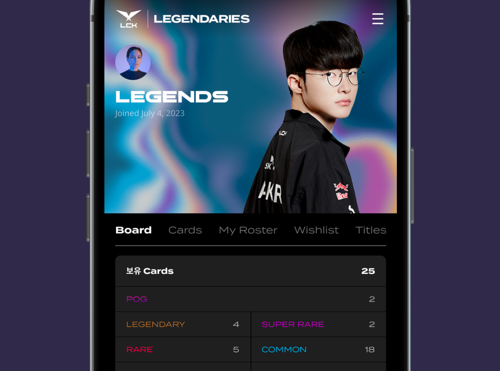 ‘我的收藏’皮肤将在LCK LEGENDARIES Season 1 运营期间内基于 1) 每个系列卡包销售结束时持有的传奇卡片基准,2) 首次购买POG票的玩家基准提供。