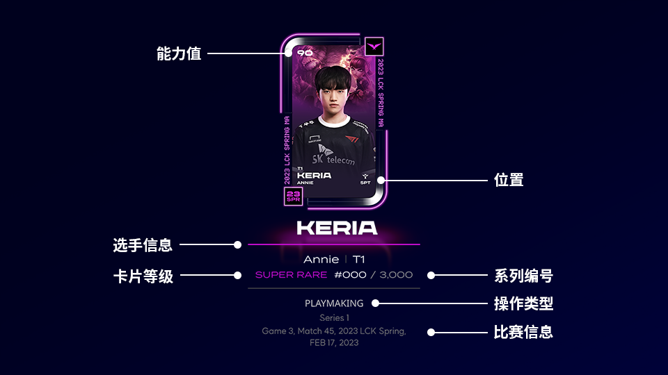 大家是否已获得了自己心仪的选手卡片了呢?LEGENDARIES 选手卡片上详细列出了各种信息。可以参考下面所示的图片。