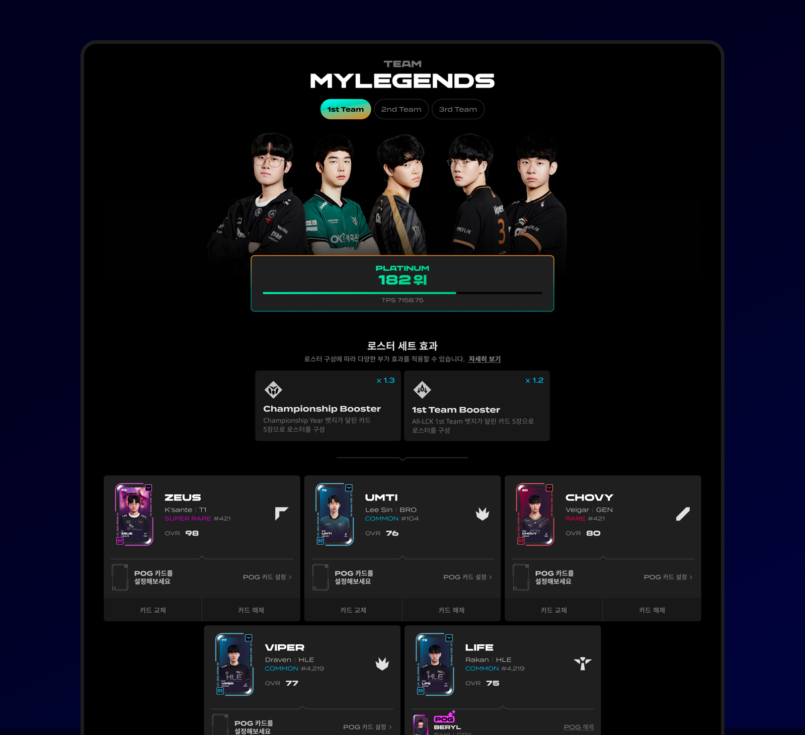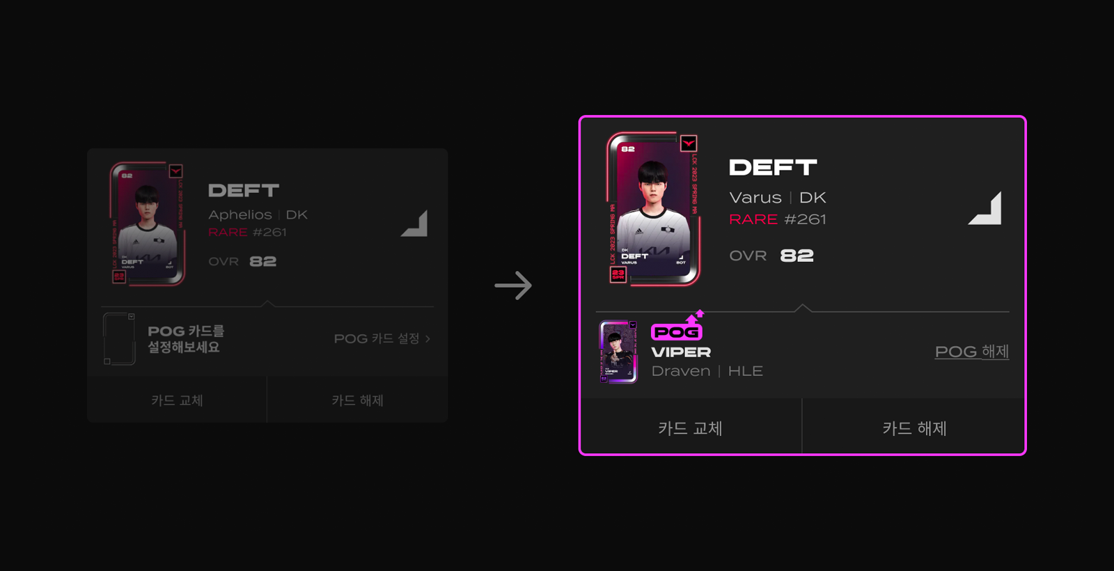 - 当设置与阵容卡片相同位置的POG卡片时(此情况下选手和队伍都不同)